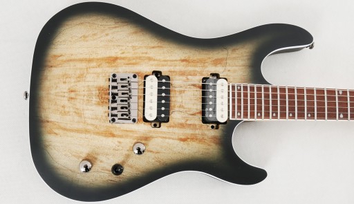 KX300 przenosi serię KX na nowy butikowy poziom jakości i funkcji, z topem Spalted Maple na korpusie mahoniowym, podwójnymi humbuckerami EMG RetroActive Super77 z klasycznym wzorem otwartej cewki ze zebrą i dwoma wyglądającymi jak porowate wykończeniami z Sunburstem o otwartych porach.