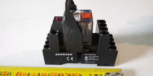 Przekaźnik marki Schrack, model PT570024, cewka zasilana napięciem 24V DC, prąd 6A, styki 4xNO oraz 4xNC. Przekaźnik po przeglądzie technicznym, styki w bardzo dobrym stanie, nie wypalone, nie buczy.