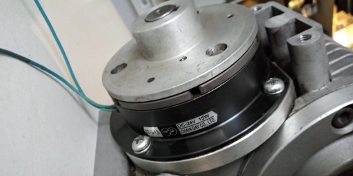 Elektrosprzęgło z elektrohamulcem, zespolone z bezluzową przekładnią ślimakową o przełożeniu 48:1. (pomiędzy elektrosprzęgłem a wałkiem wejściowym jest luz na klinie i aby w pełni skorzystać z przekładni, należy ten luz zlikwidować, jeśli komuś na tym zależy)