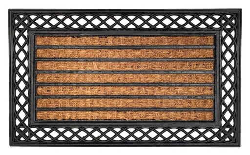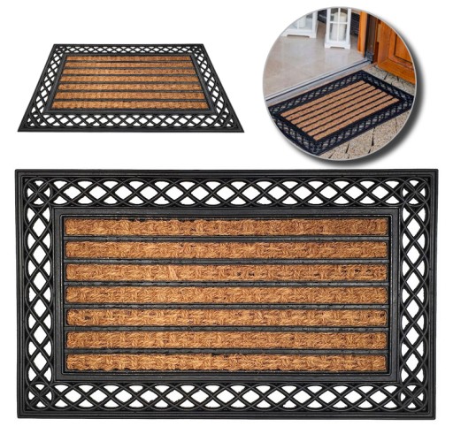 - Wycieraczka wykonana z naturalnych włókien kokosowych i gumy wysokiej jakości, zapewniającej właściwości antypoślizgowe.