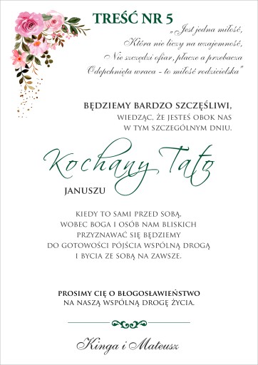 - Treść włożona do środka w formacie a5 148,5 x 210 mm całkowicie dowolna lub można skorzystać z naszych propozycji