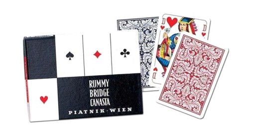 Wysokiej jakości karty do gry renomowanej firmy Ferd. Piatnik & Sohne. W komplecie 2 talie (nieco większe) w standardowym Piatnikowskim pudełku. Talie składają się z 55 plastikowanych kart o wymiarach 62 x 91 mm i gramaturze 310. Idealne zarówno do brydża, pokera, remika jak i innych gier. Wyroby wiedeńskiej fabryki Ferd. Piatnik & Sohne od 1824 roku urzekają bogactwem wzorów i perfekcją wykonania. Jakość i tradycja!