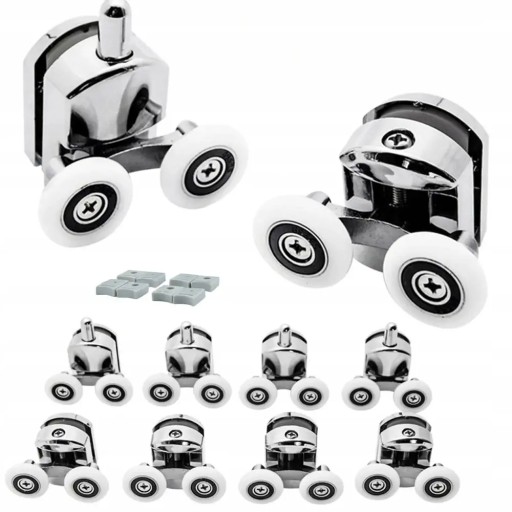 UNIWERSALNE – rolki zostały wykonane z chromu, tworzywa sztucznego, nylonu oraz stali odpornej na korozję. Pasują do wszystkich kabin prysznicowych w których zastosowano tego typu łożyska kulkowe. Rolki wraz z kółkami dzięki uchylnej konstrukcji dopasowują się do kształtu prowadnicy. Pasują do kabin zarówno kwadratowych jak i półokrągłych.