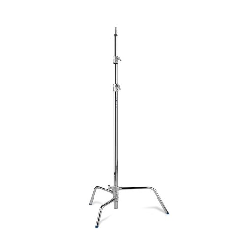 Statywy oświeleniowe C-Stand wyróżnia charakterystyczna budowa nóg dzięki której zajmują mniej miejsca w studiu i można na nich położyć dodatkowe obciążenie.