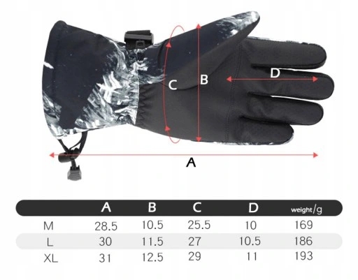 Rękawice narciarskie zostały zaprojektowane zarówno dla mężczyzn, jak i kobiet, mają stylowy wygląd i wiele rozmiarów do wyboru. Proszę wybrać odpowiedni rozmiar i sprawdzić tabelę rozmiarów przed zakupem. Jeśli nie jesteś dobrze dopasowany, zgłoś się.