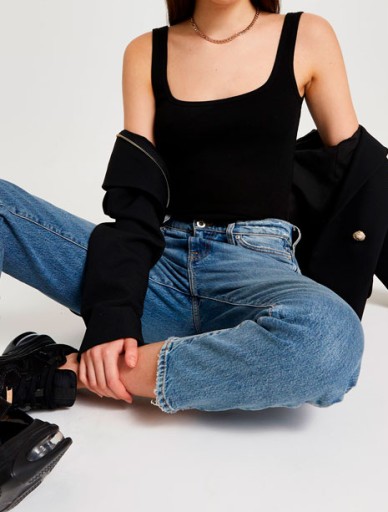 ЧЕРНЫЙ ЖЕНСКИЙ ТОП В РЕБРУСКУ С ЛЕМЯМИ 34 RBO