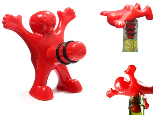 Oryginalny korek do butelek w postaci czerwonego ludzika.