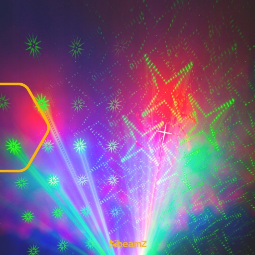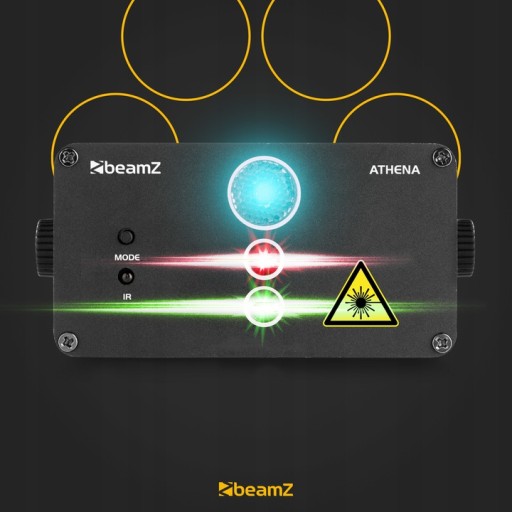 Efekt laserowy Ateny uzyskuje się za pomocą czerwonego lasera 100mW i zielonego 50mW. Wiązki laserowe z modułów laserowych są przekształcane w fajne ruchome wzory i figury. Athena ma łącznie 32 różne wzory, które zapewniają dynamiczny i zróżnicowany pokaz laserowy.