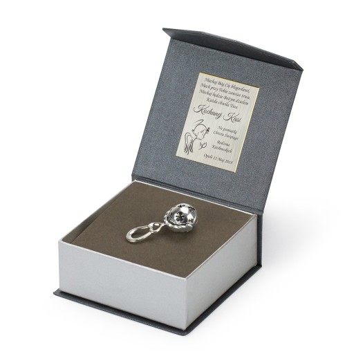 Blaszkę z dedykacją otrzymasz oddzielnie, przygotowaną ze specjalną do tego celu taśma, abyś osobiście mógł zdecydować gdzie ją umieścić. To sprawi że będzie to Twój dodatkowy wkład w przygotowanie upominku.