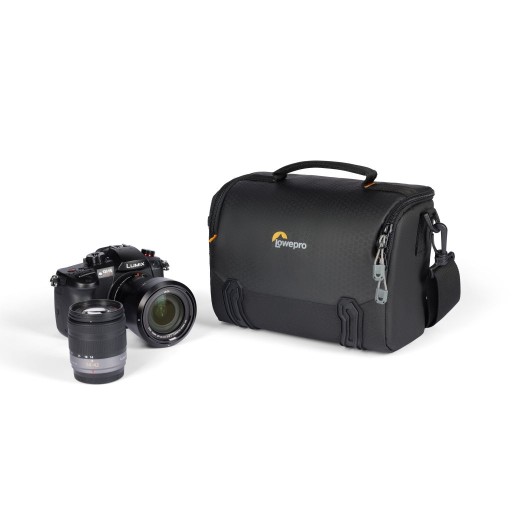 SH 140 III to torba przeznaczona na bezlusterkowca z obiektywem (np. Fujifilm XT200, Canon M50 MII, EOS R10, Nikon Z50), dodatkowy obiektyw oraz mniejsze akcesoria takie jak baterie i karty pamięci.