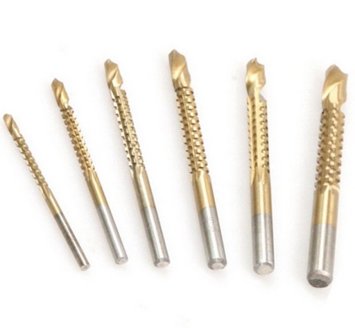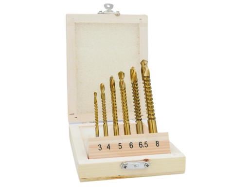 6-ELEMENTOWY ZESTAW WIERTEŁ FREZUJĄCYCH ze stali szybkotnącej HSS-TiN