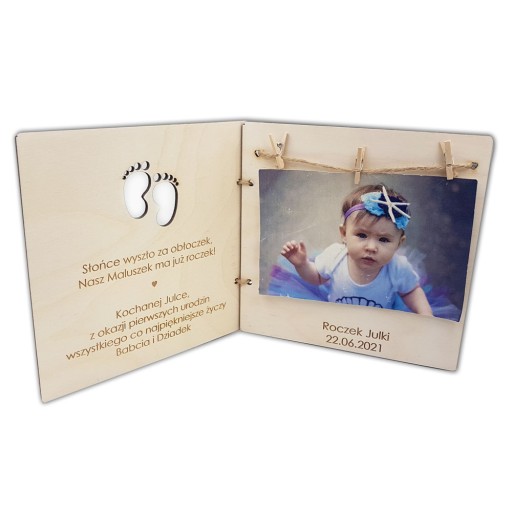 Będzie piękną pamiątką ma roczek. Możesz zmodyfikować tekst także tak, by była na inną okazję.