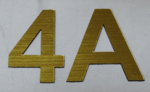 Cyfry i litery z laminatu grawerskiego wykonujemy w kolorach złotym i srebrnym,