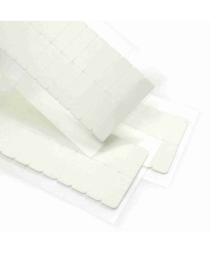Taśmy przygotowane są z najmocniejszego kleju oraz preparatów, które utrzymują ich wysoką elastyczność. Produkt hipoalergiczny. Taśmy sprzedawane są w listkach, na których jest 12 tasiemek o wymiarach 4cm x 0,8cm. Taśmy są 2 stronne.