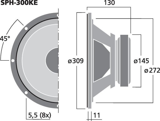 - Głośnik osiąga bardzo niski rezonans zarówno w obudowach typu bass-reflex jak i w obudowach zamkniętych