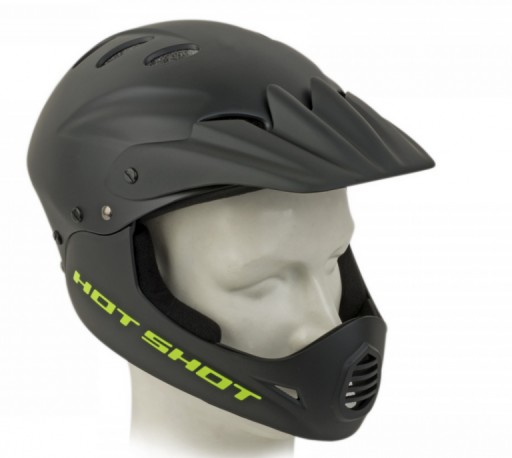 Kask integralny z odpinaną osłoną podbródka i odpinanym daszkiem.