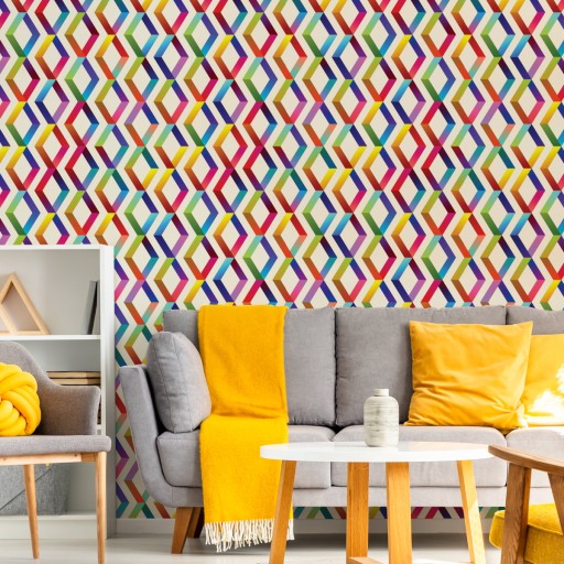 ЦВЕТНЫЕ обои с 3D геометрическими фигурами для гостиной