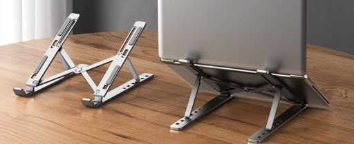 Stojak jest składany, dzięki czemu po złożeniu ma bardzo małe gabaryty. Zmieści się do każdej szuflady czy torby na laptopa.