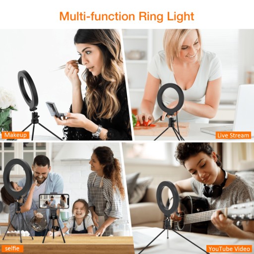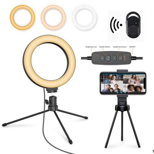 LAMPA PIERŚCIENIOWA 60W RING JEEMAK 3 BARWY ŚWIECENIA + STATYW oraz PILOT i STATYW do telefonu.
