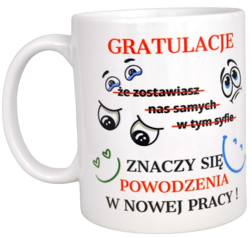 Kubek nowa praca, pożegnanie kolegi koleżanki z pracy, śmieszne kubki, śmieszny prezent, job, firma, biuro, office, nowe wyzwanie, praca