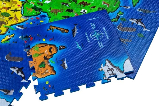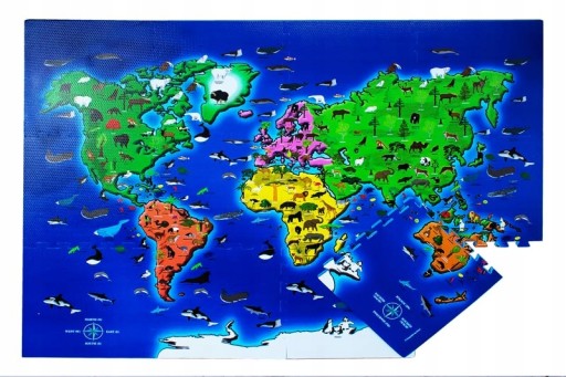 Duże puzzle edukacyjne - kontynenty i charakterystyczne dla danych regionów zwierzęta i rośliny.