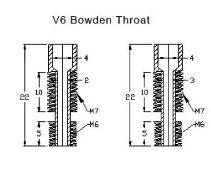Rurka głowicy (ekstrudera) M6 x M7 x 22 mm. do filamentu o średnicy 1,75 mm.