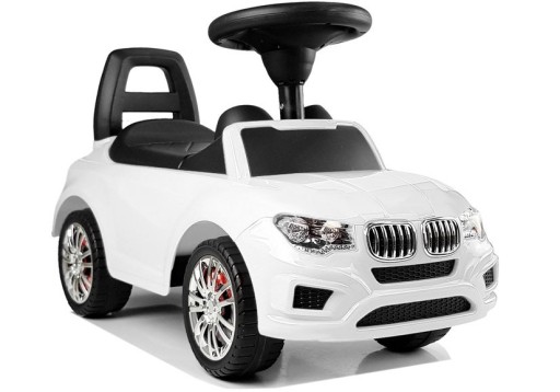 Auto - jeździk wyposażony jest w szerokie koła, które umożliwiają bezpieczne poruszanie się nim po różnego typu podłożach. Siedzenie jest wyprofilowane w taki sposób, by dolna część pleców naszego dziecka miała stałe oparcie podczas podróży. Auto posiada pojemny schowek do przechowywania małych przedmiotów niezbędnych małemu kierowcy. Zapewniony jest również element zapobiegający przewróceniu się.