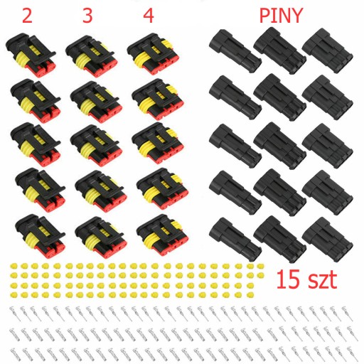ZŁĄCZE W ZESTAWIE Z KOSTKĄ MĘSKĄ ORAZ ŻEŃSKA, KOMPLET KONEKTORÓW I USZCZELNIEŃ SUPERSEAL 2 PIN