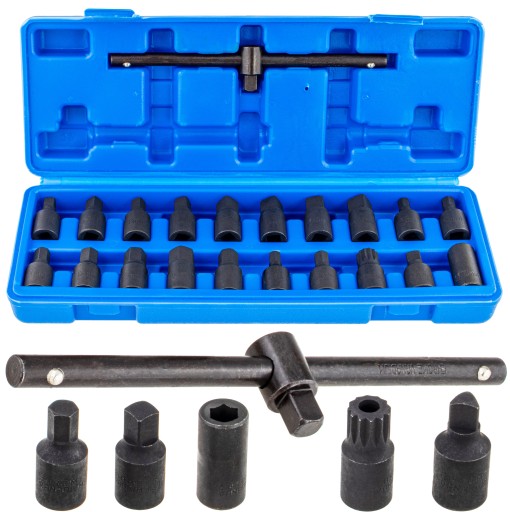 KOMPLET KLUCZY UDAROWYCH DO KORKÓW OLEJU - 20 SZTUK + UCHWYT