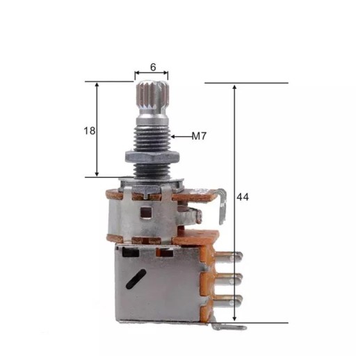 A500K potencjometr logarytmiczny, najczęściej stosowany jako potencjometr głośności w gitarach z przystawkami typu humbucker. Rezystancja 500 kOhm jest właściwa dla przystawek pasywnych.