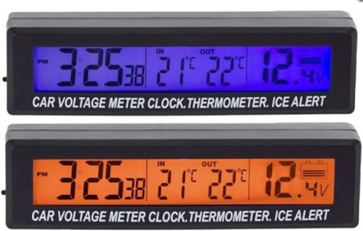 Termometr samochodowy, zegarek z podświetleniem 3w1