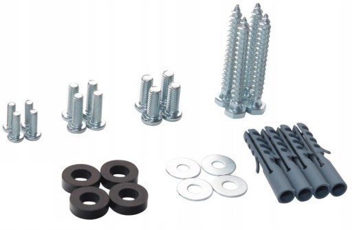 W zestawie z uchwytem otrzymujesz uniwersalne akcesoria montażowe które powinny być odpowiednie do większości montowanych telewizorów. Jeśli zdarzy się sytuacja że jakieś śrubki okażą się za krótkie, należy we własnym zakresie je dokupić w pobliskim sklepie z narzędziami.