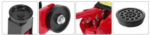 Podnośnik wyposażony jest w koła jezdne. Idealny do domowego garażu jak i profesjonalnego warsztatu. Prosta konstrukcja i małe rozmiary urządzenia gwarantują łatwość w użytkowaniu i niezawodność każdemu kierowcy. Profesjonalne solidne narzędzie wykonane z bardzo mocnego i odpornego na złe warunki atmosferyczne materiału.