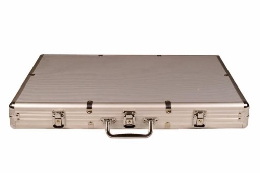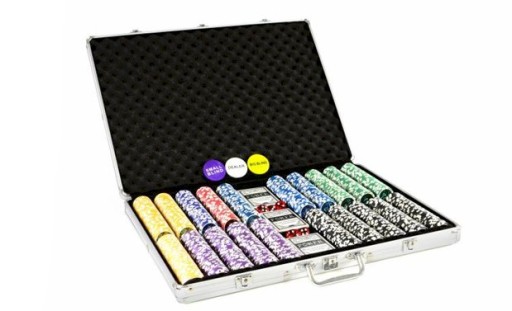Zestaw do pokera zawiera 500 sztuk żetonów z rdzeniem metalowym o wadze 11 g, żetony mają naklejki laserowe z nominałem , każdy nominał odróżnia się kolorem . Można wieczorami w domu z przyjaciółmi zacząć cieszyć się grą w pokera. Ta walizka to idealny prezent dla każdego miłóśnika gry w pokera.Dane techniczne:waga żetonu: 11 gśrednica żetonu: 40 mmżeton z metalowym rdzeniemrozmiar walizki : 56 x 40 x 7 cmwaga walizki: około 15 kgZawartość opakowania:1 x aluminiowa wyścielana walizka z 2 zamykanymi na klucz zamkami i klamrą2 x klucz1 x dealer button1 x żeton little blind1 x żeton big blind5 x kości3 x plastikowe karty do pokera (3 x 54 szt)50 szt - nominał 5, czerwone żetony50 szt - nominał 10, czarne żetony150 szt - nominał 25, zielone żetony150 szt - nominał 50, błękitne żetony250 szt - nominał 100, czarne żetony200 szt -nominał 500, fioletowe żetony150 szt - nominał 1000, żółte żetony