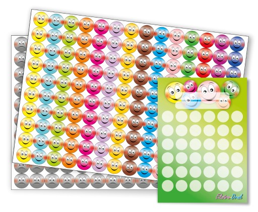 Małe naklejki motywacyjne kolorowe, uśmiechnięte i smutne buźki dla dzieci (20mm, 560sztuk) EKO