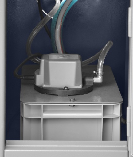 ☑️ Przecinarka wyposażona jest w wydajny system chłodzenia, w skład którego wchodzą pompka oraz zbiornik na chłodziwo umieszczone w podstawie przecinarki.