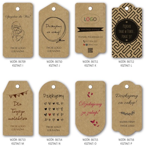 - Możesz zamówić etykiety z dowolną wielkością dziurki od 3 mm wzwyż, lub bez dziurki. Mniejsze dziurki kilenci zamawiają, jeśli przypinają etykiety przy użyciu metkownicy, większe jeśli zawieszają je za pomocą sznurka.