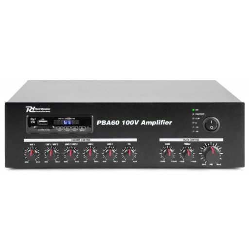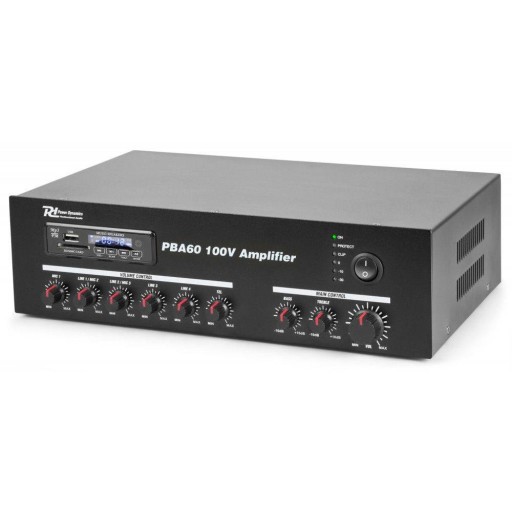 Power Dynamics PBA60 to wzmacniacz 60W 100V z odtwarzaczem MP3, tunerem i Bluetooth, który może być używany do wielu zastosowań. Opcja 100V umożliwia podłączenie wielu głośników i używanie dłuższych kabli głośnikowych bez strat. Idealny na przykład do restauracji, które chcą uzyskać dobre rozproszenie hałasu w tle. PBA60 jest wyposażony w różne opcje odtwarzania muzyki i prawie wszystkie źródła dźwięku można podłączyć do tego 100V wzmacniacza.