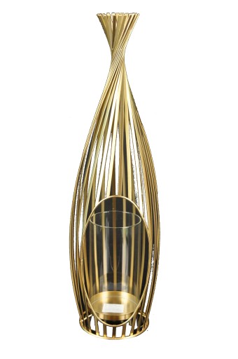 ЗОЛОТОЙ МЕТАЛЛИЧЕСКИЙ ПОДСВЕЧНИК-ФОНАРЬ
