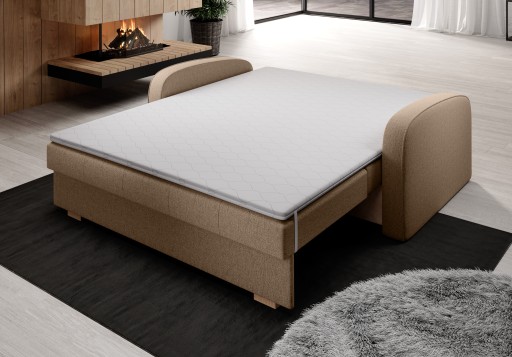 Aby poprawić komfort snu zakup dodatkowo dedykowany dla sofy materac nawierzchniowy o wymiarach dostosowanych do powierzchni spania mebla. Wszyte gumy stabilizujące utrzymują nakładkę we właściwym miejscu i zapobiegają zmianie jej położenia. Topper zapewni Ci jeszcze większą wygodę, spersonalizuje twardość sofy pod indywidualne preferencje, pozwoli również zachować żywotność tkaniny obiciowej kanapy na dłużej. Zamek z trzech stron umożliwia sprawne zdjęcie pokrowca celem jego wyprania (zalecamy pranie pokrowca pojedynczo w 30-40 stopniach), dzięki czemu estetyka utrzymana zostanie przez dłuższy czas.