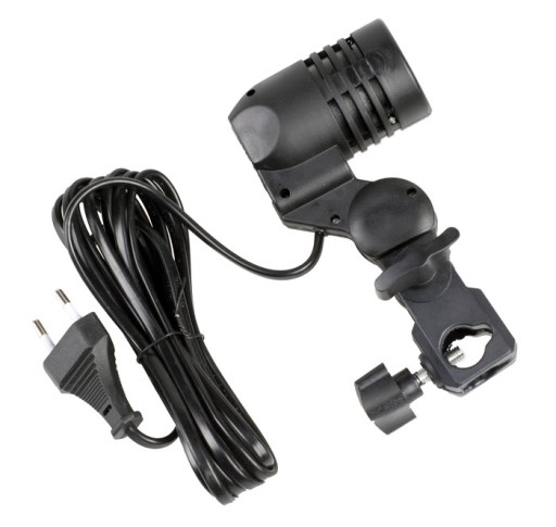 Oprawka pozwala na przyłączenie do statywu oświetleniowego żarówki z gwintem E-27 (nr 1 na zdjęciu) oraz parasolki (nr 2 na zdjęciu)