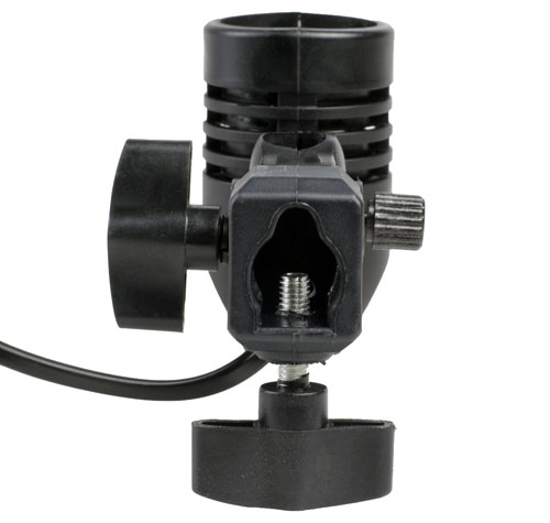 Posiada wejście na statyw oświetleniowy o standardowej grubości 16 mm.