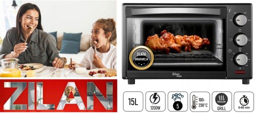 Piekarnik elektryczny renomowanej firmy ZILAN, to doskonała ALTERNATYWA DLA TRADYCYJNEGO PIEKARNIKA. Kompaktowe rozmiary, w połączeniu z dużą mocą, pozwolą Ci na upieczenie ulubionych potraw z GRILLA, a także ryb, frytek, steków ciast, a nawet chleba.