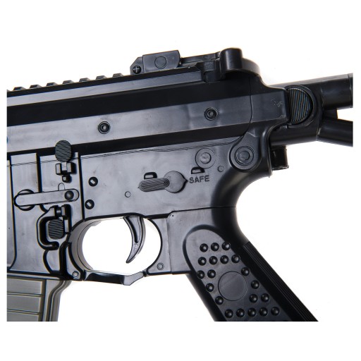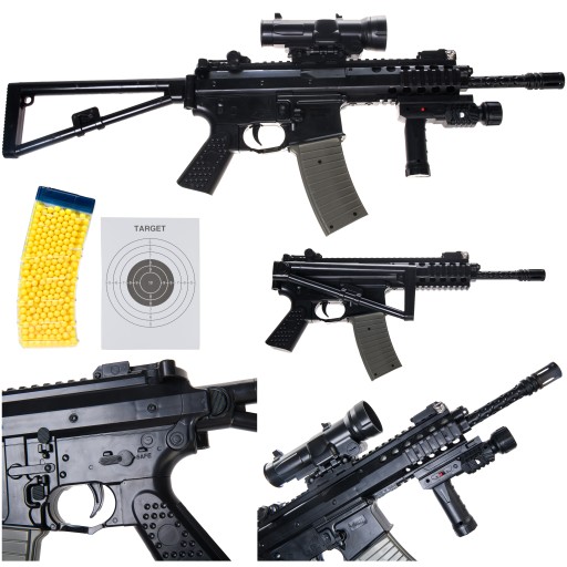 - Karabin wykonany jest z wytrzymałego tworzywa ABS, który jest odporny na wgniecenia, przetarcia i zarysowania co pozwala na utrzymanie karabinu w idealnym stanie wizualnym