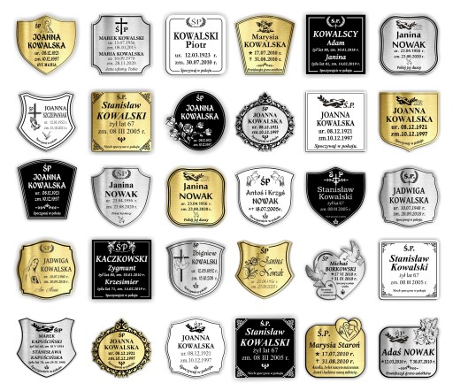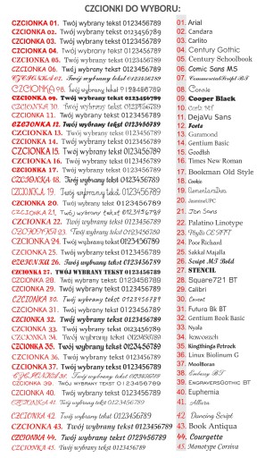 - Jest możliwość zmiany czcionki i grafiki w wybranym wzorze tablicy (do wyboru we wzornikach poniżej).