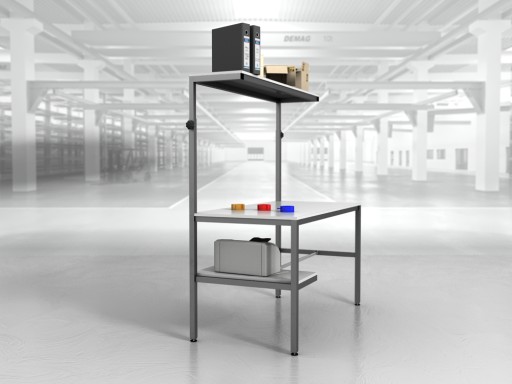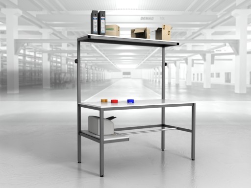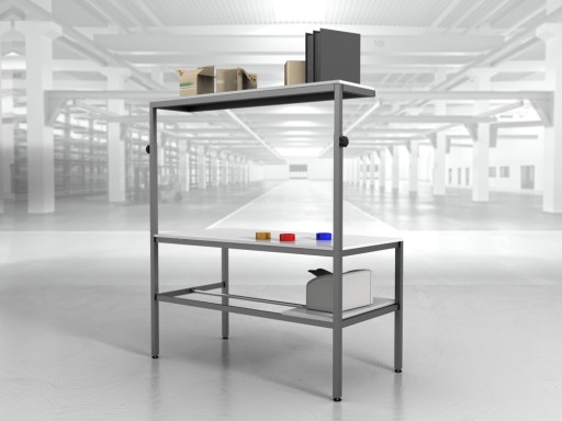 Wysokiej jakości stół warsztatowy do pakowania paczek wykonany z profili metalowych spawanych w stabilną bryłę.