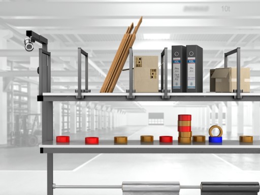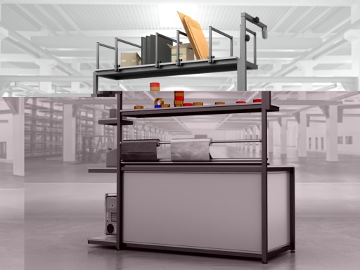 Wysokiej jakości stół warsztatowy do pakowania paczek wykonany z profili metalowych spawanych w stabilną bryłę.