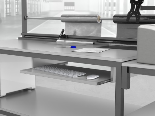 Wysokiej jakości stół warsztatowy do pakowania paczek wykonany z profili metalowych spawanych w stabilną bryłę.