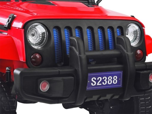Najnowszy model JEEP 4X4 wyposażony jest w 4 bardzo mocne silniki, koła wykonane z tworzywa EVA , światła przednie + światła na pałąku otwierane drzwi ( pałąki do góry ), płynny start, pilot sterowania 2.4Ghz