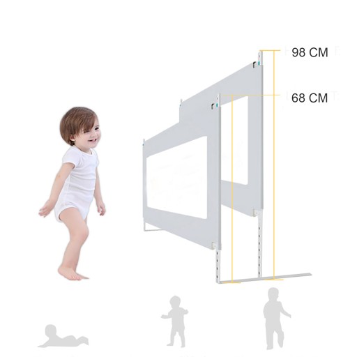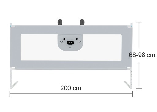 Barierkę można dostosować do wysokości materaca, maksymalna wysokość barierki to 98 cm a minimalna to 68 cm